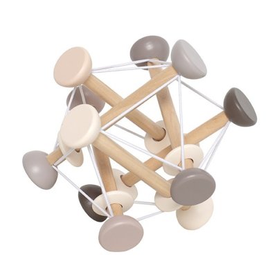 Dřevěná interaktivní hračka Stimulační aktivní hračka podporující více smyslů najednou Měkké gumové pásky s dřevěnými kroužky, které lze otáčet a tahat Dřevěné tyčky lze stlačovat nebo vysouvat, což rozvíjí jemnou motoriku Jasné a hravé barvy poskytují dětem vizuální podněty a zábavu Skvělý tip na dárek ke křtu či první narozeniny Technické parametry Doporučený věk: 1+ Rozměry produktu: cca 17,5 × 17,5 × 17,5 cm Materiál: teakové dřevo, polyesterová šňůra Bezpečnost: vyrobeno z FSC™ certifikovaného dřeva, testováno dle evropských standardů, používání pod dohledem dospělé osoby