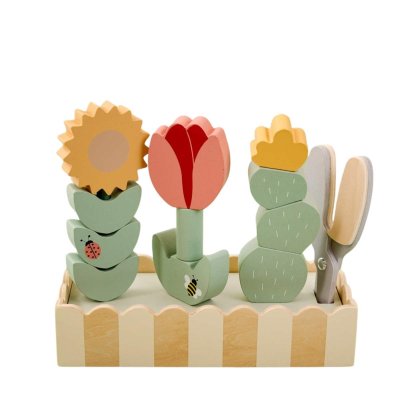 Hrací sada květin pro malé zahradníky Roztomilá dřevěná květinová sada pro skládání, sběr a tvoření vlastních květin Obsahuje tři květiny (slunečnici, tulipán a kaktus) a pár zahradních nůžek, všechny vyrobené z dřeva a lakované jemnými, přírodními barvami Květiny drží pohromadě pomocí suchého zipu, což podporuje jemnou motoriku a kreativní hru Praktická dekorativní dřevěná krabička zajišťuje úhledné uskladnění všech dílů Ideální pro malé floristy a pro rozvoj představivosti Technické parametry Doporučený věk: 18m+ Rozměry produktu: 14,5 × 23 × 5,5 cm Materiál: MDF, překližka, borovicové dřevo Bezpečnost: testováno dle evropských standardů, používání pod dohledem dospělé osoby