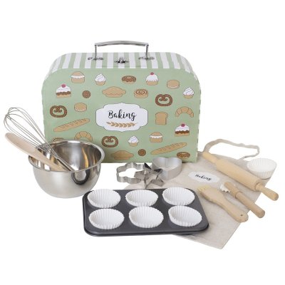 Dětská sada na pečení Kompletní sada pro malé pekaře obsahující 13 dílů Obsahuje váleček, misku, metličku a další kuchyňské doplňky Vše je přehledně uloženo v praktickém kufříku Podporuje kreativitu, představivost a hru na kuchyni Ideální pro přípravu „dobrot“ v dětské kuchyňce Technické parametry Rozměry produktu: 20,5 × 29 × 9 cm Vhodné pro děti od 3 let