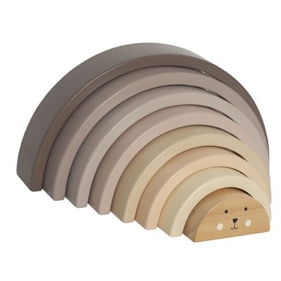 Dřevěná stavebnice duha Osm různých dílů, které lze skládat nebo používat samostatně Možnost stavět tunely, malé domečky pro panenky nebo mosty pro oblíbená autíčka Podporuje kreativní hru a představivost dítěte Pouze dětská fantazie určuje, co vznikne Technické parametry Materiál: MDF, borovicové dřevo Rozměry produktu: 14 × 27 × 6 cm Vhodné pro děti od 18 měsíců Splňuje evropské bezpečnostní normy Používejte pod dohledem dospělé osoby