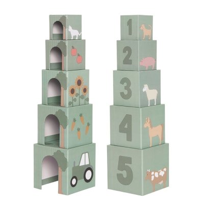 Skládací kostky se zvířátky Sada 5 barevných kostek různých velikostí s čísly 1–5 Každá kostka obsahuje motivy hospodářských zvířat Učí děti poznávat čísla, barvy, velikosti a názvy zvířat Kostky lze stohovat nebo skládat vedle sebe pro zábavné učení Obsahuje 2 krávy, 2 koně, 2 prasátka, 2 jehňata, 1 psa a 1 kočku Technické parametry Materiál: Překližka, karton Rozměry produktu: 17 × 26 × 13 cm Vhodné pro děti od 18 měsíců Splňuje evropské bezpečnostní normy Používejte pod dohledem dospělé osoby