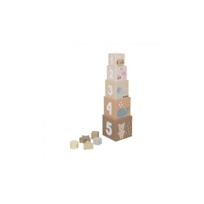 Skládací kostky s čísly a zvířátky Sada 5 stohovatelných kartonových kostek v přírodních barvách Každá kostka má 2 různé motivy, číslo a otvor pro správný tvarový dílek Podporuje motoriku, koordinaci ruka-oko a poznávání čísel Kostky lze stohovat, třídit a hrát si s nimi při skládání a boření Největší kostka (číslo 5) má rozměr 12 × 12 cm Technické parametry Materiál: Teakové dřevo, karton Rozměry produktu: 17 × 26 × 13 cm Vhodné pro děti od 18 měsíců Splňuje evropské bezpečnostní normy Používejte pod dohledem dospělé osoby