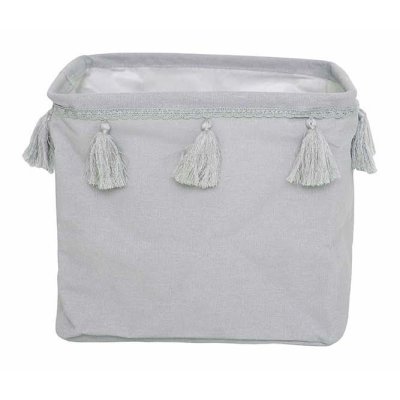 Úložný košík Stylový a praktický košík na hračky, šály, čepice nebo jiné dětské věci Voskovaná vnitřní strana, díky které si košík udržuje tvar i prázdný Třásně po obvodu Vyroben z částečně recyklovaného materiálu Technické parametry Materiál: 35 % polyester, 65 % bavlna Rozměry: 29 × 29 cm Vhodné pro děti od narození Testováno dle evropských bezpečnostních norem, bezpečné pro děti pod dohledem dospělého