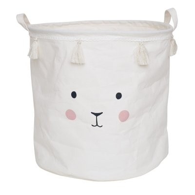 Úložný košík Stylový a praktický textilní košík na hračky, šály, čepice a jiné dětské věci Voskovaná vnitřní strana pro udržení tvaru i prázdného košíku Snadné přenášení díky držadlům Dekorativní motiv zajíčka na jedné straně Vyroben převážně z recyklovaného materiálu, barva textilu se může mírně lišit Technické parametry Materiál: 35 % polyester, 65 % bavlna Rozměry: 40 × 40 cm Vhodné pro děti od narození Testováno dle evropských bezpečnostních norem, bezpečné pro děti pod dohledem dospělého