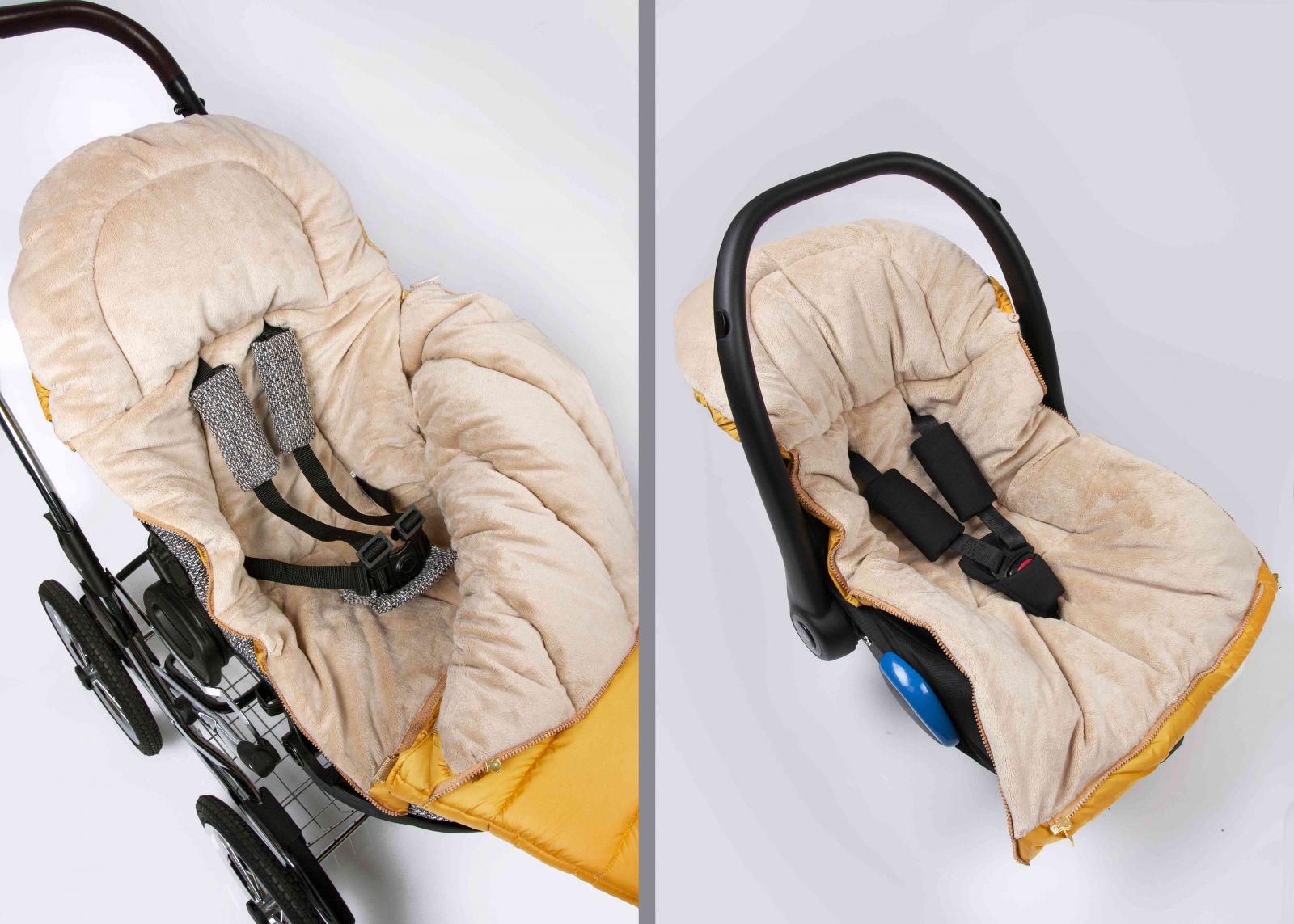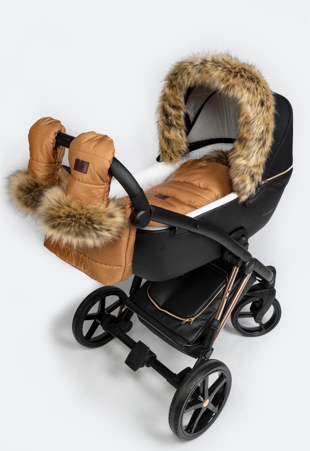 Tento výrobek lze doplnit o rukávník a kožíšek na kočárek ve stejné barvě kožešiny.
