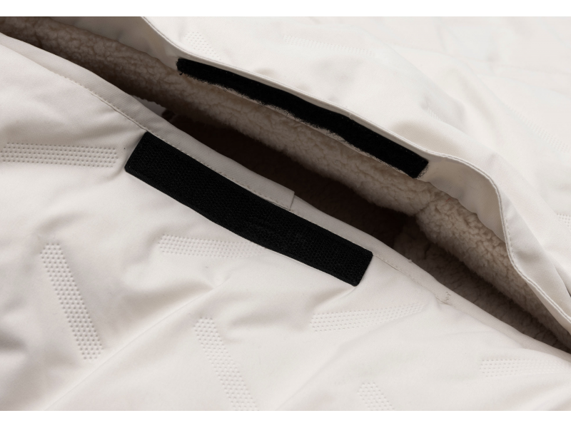 Teplý fusak do kočárku s plyšovou podšívkou dokonale ochrání vaše dítě v kočárku před nepřízní počasí. Voděodolnost vnější tkaniny je zajištěna technologií Bionic Finish. Dvousměrný zip usnadňuje manipulaci s dítětem. Kapuca umožňuje zachumlání spícího dítěte, když dítě v kočárku sedí, je možné ji přetáhnout přes opěrku kočárku. Otvory na zadní straně umožňují protažení 3-bodových i 5-bodových pásů kočárku.
