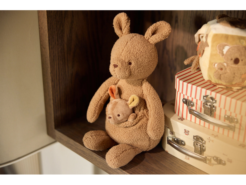 Roztomilá klokaní maminka s klokánkem v kapse z měkkého fleece materiálu je vhodná jako mazlík do postýlky pro klidné usínání. Malého klokánka je možné z kapsy vyndat. Hračka se může stát součástí mnoha dětských her i sloužit jako krásná dekorace v dětském pokoji.