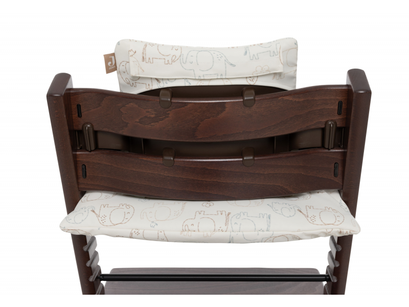 Dopřejte svému dítěti maximální pohodlí při sezení v rostoucí dřevěné židličce. Měkce polstrovaná podložka s voděodolným potahem je odolná a snadno se čistí otřením. Hravý potisk motivů slůněte dodají dětskému jídelnímu koutku veselý a přívětivý vzhled.