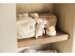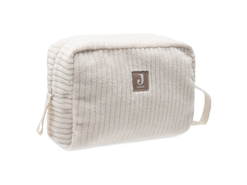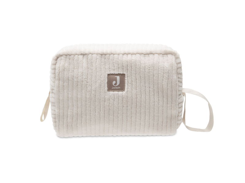 Toaletní pouzdro s uzavíráním na zip je vyrobeno z příjemného žebrovaného materiálu s podšívkou s potiskem lístků. Využijete jej pro přehledné uložení toaletních potřeb pro vaše miminko doma i na cestách.