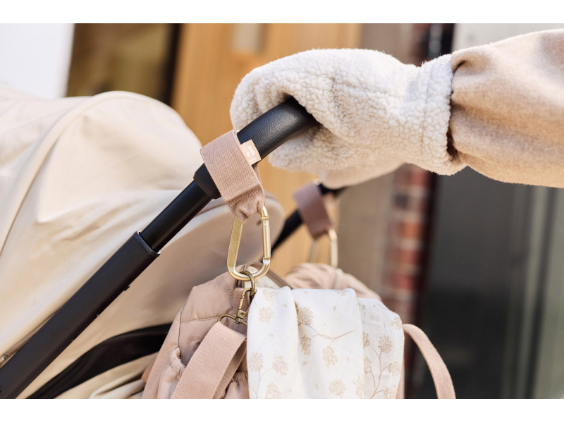 Praktický doplněk na procházky s kočárkem. Univerzální úchyt vám umožní snadno zavěsit přebalovací tašku, kabelku nebo nákupní tašku na rukojeť kočárku, aniž by se kočárek převážil.