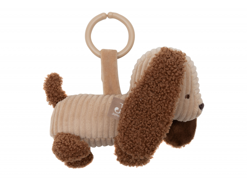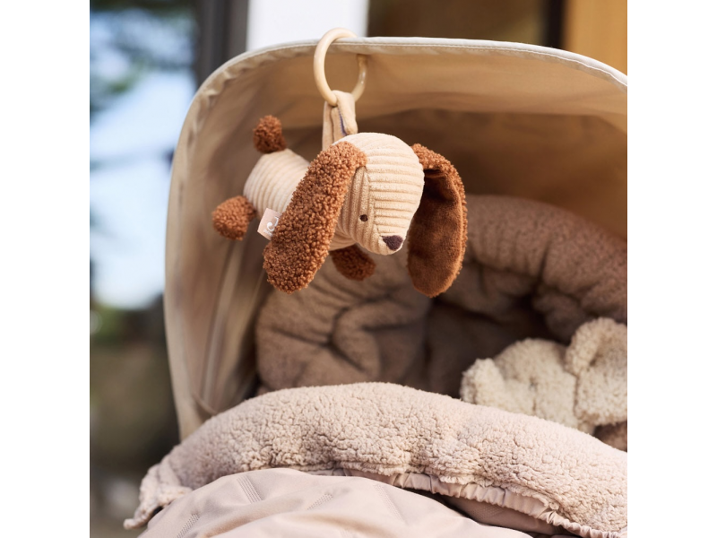 Roztomilý závěsný pejsek Diego z měkké žebrované látky s buklé detaily je ideálním společníkem pro vaše miminko na procházkách a výletech. Díky plastovému kroužku jej snadno připevníte na kočárek nebo autosedačku.