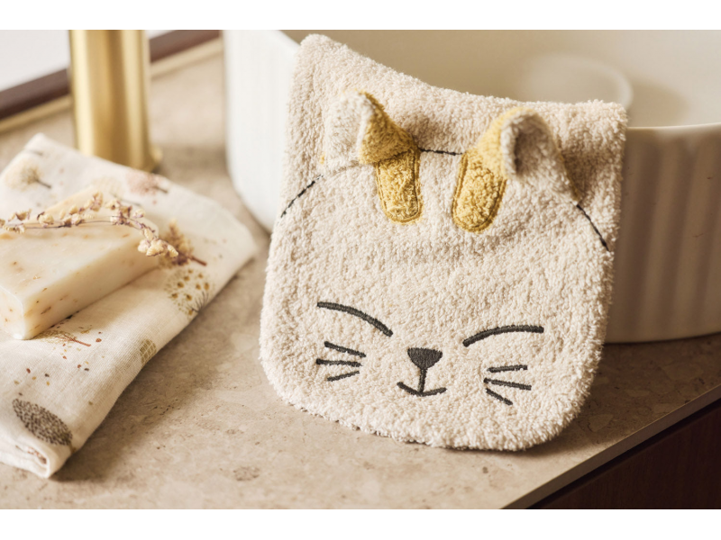 Praktická žínka z jemné froté bavlny v podobě roztomilé kočičky je ideální pro mytí citlivé pokožky vašeho miminka.