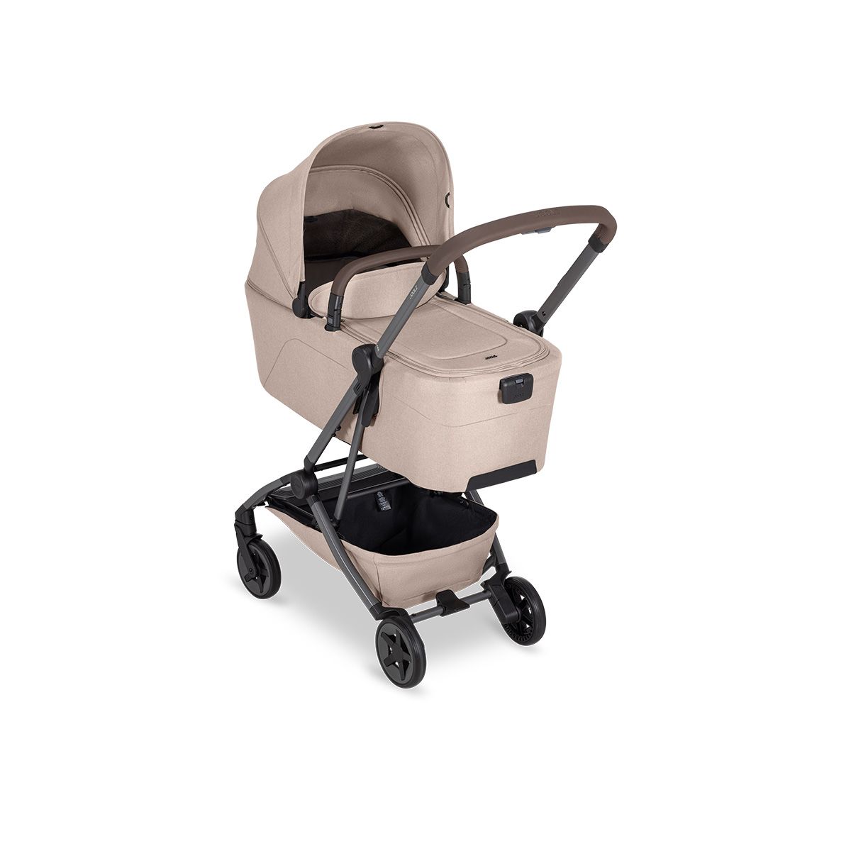 Inovativní hluboký díl se super lehkou instalací na podvozek kočárku. Easy-peasy! Použijte průhlednou ventilaci v roztahovací sluneční cloně a můžete hrát peekaboo! A pokud bude těžké odolávat té vaší malé roztomilosti, uchopte dítko do náručí a přitulte se! Hluboký díl je možné složit do kompaktního obalu – dokonce i s připojeným hlubokým dílem!Jednoduše si ho přes rameno přehoďte a jděte! Šikovné, že? Kolem 6 měsíců, kdy je vaše dítě připraveno prozkoumávat svět, můžete přejít z hluboké postýlky na sedátko a začít tak společně objevovat svět. Kdo je připraven na procházku?