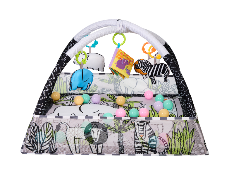 Hrací deka s hrazdou KikkaBoo Jungle je ideální volbou pro rozvoj dítěte v prvních letech života. Pohodlná hrací deka s krásnými motivy ze života v džungli je navržena tak, aby podporovala smyslový rozvoj a motorické dovednosti dítěte od narození až do 36 měsíců.