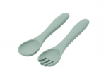 Dětský příbor pro první samostatné krmení KikkaBoo Platinum Silicone tvoří vidlička a lžička z bezpečného materiálu šetrného k dětským dásním.