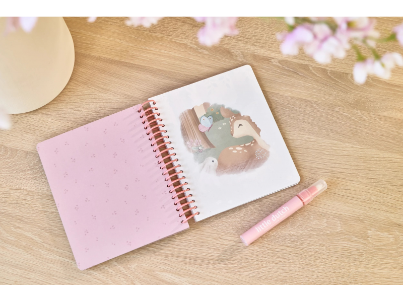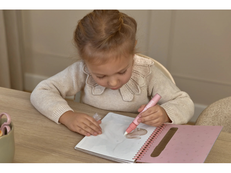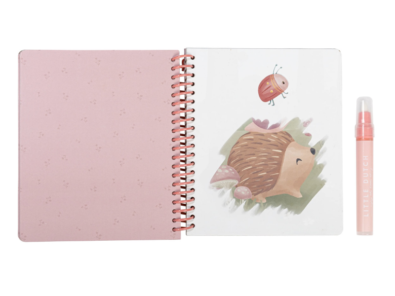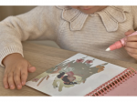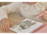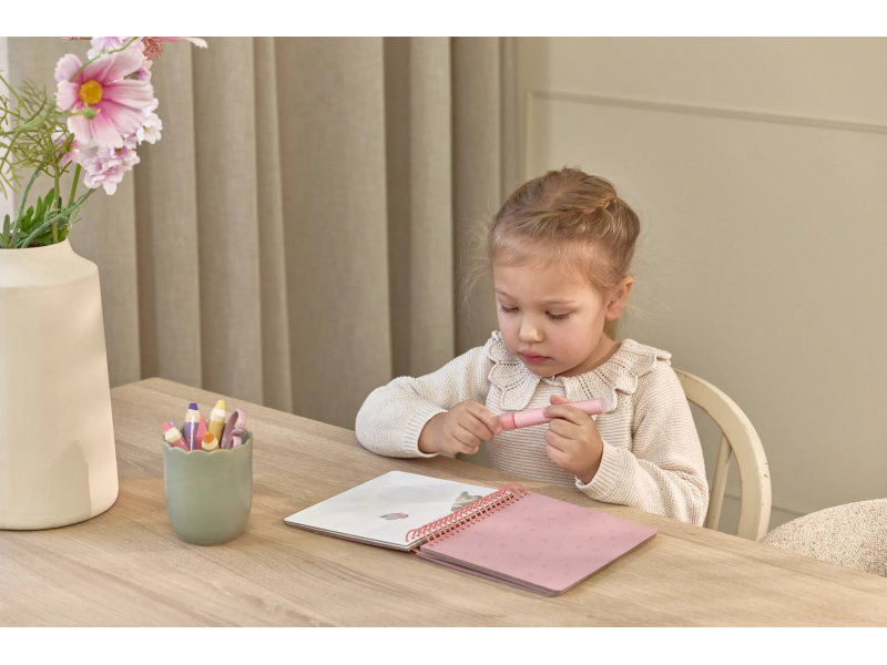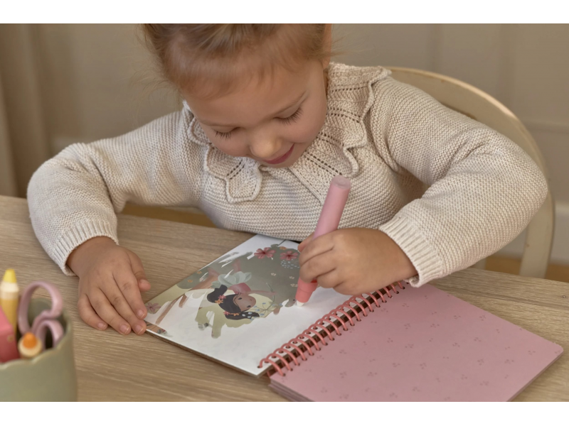 Knížka s pěti ilustrovanými stránkami je opakovaně použitelná. Díky kroužkové vazbě z pevného kartonu drží otevřená pro pohodlné malování.