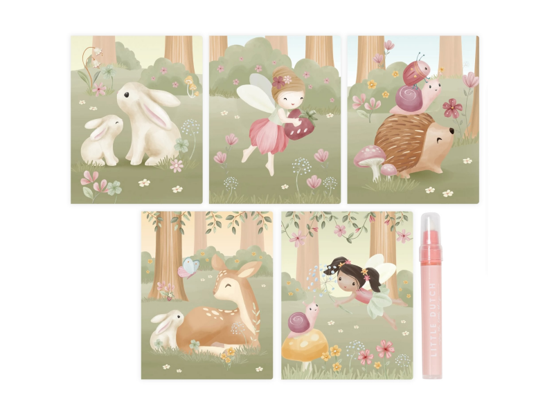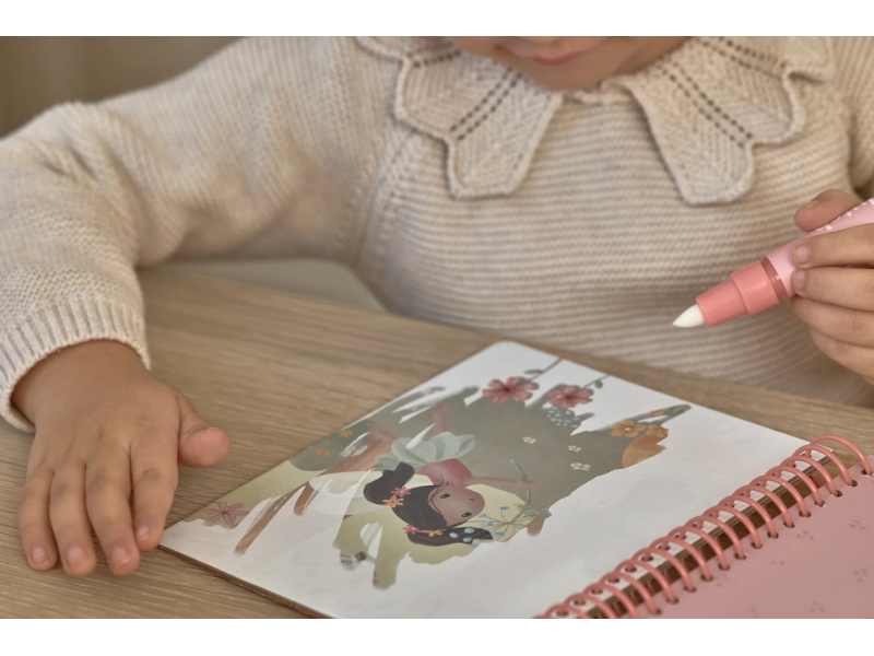 Kouzelná knížka skrývá na svých stránkách krásné ilustrace pohádkových víl a zvířátek z lesa. Ilustrace se odkrývají s pomocí vodního fixu, který je součástí knížky. Stačí fix naplnit vodou a malému umělci či umělkyni se během chvilky postupně vynoří víly, zvířátka i pestrobarevný rozkvetlý les.