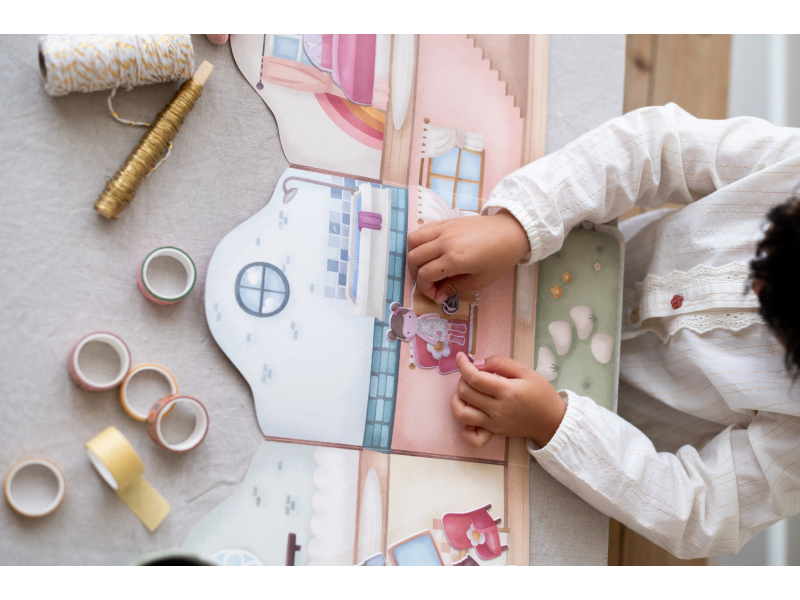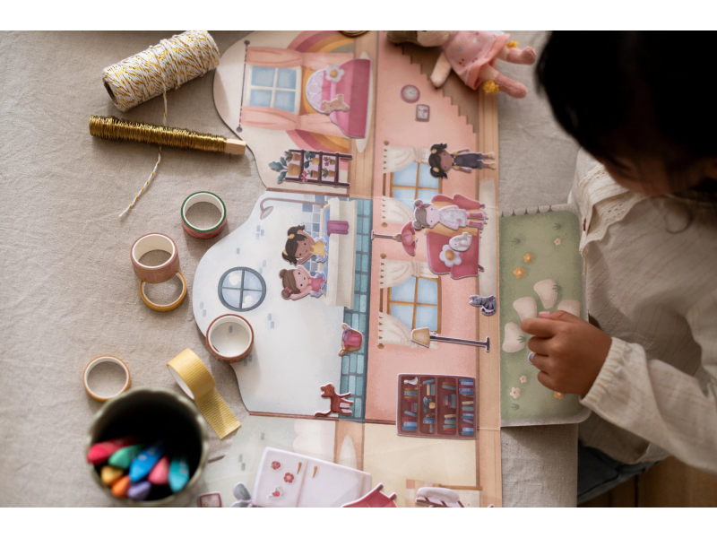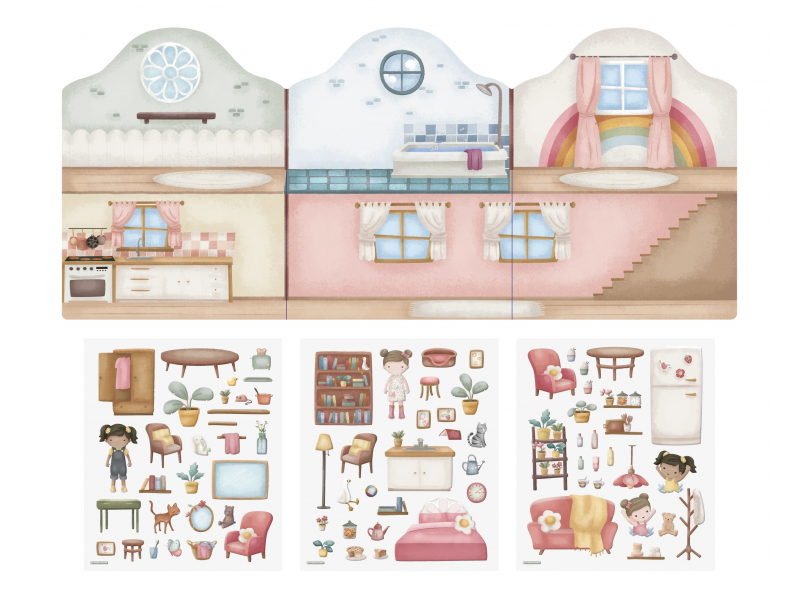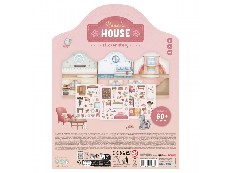 Podpořte dětskou fantazii s touto sadou opakovaně použitelných samolepek Little Dutch. Děti mohou znovu a znovu vyzdobit domeček Rosy více než šedesáti veselými 3D samolepkami a pokaždé vytvořit jiný příběh.