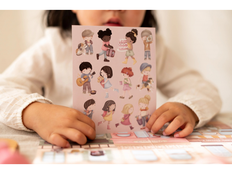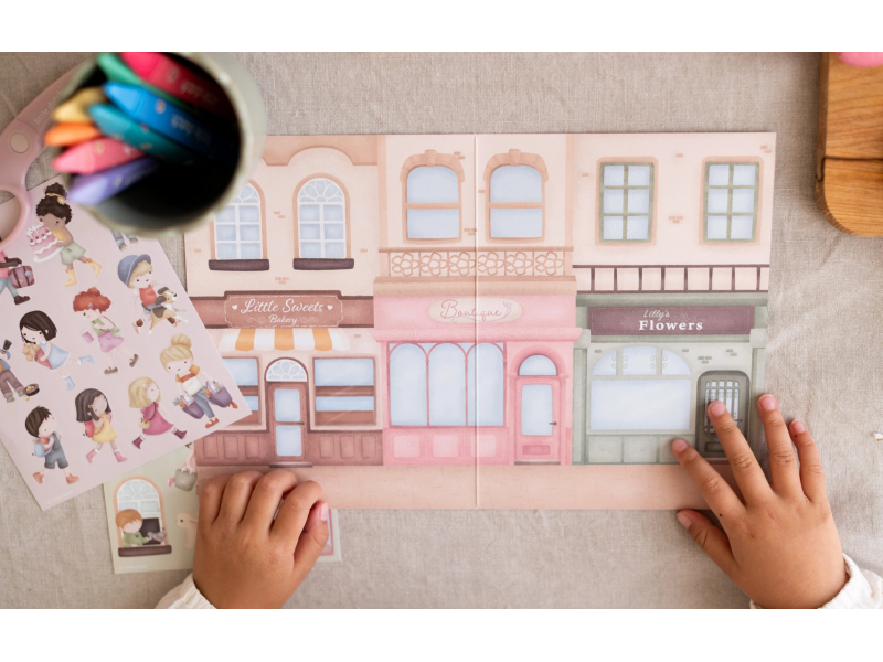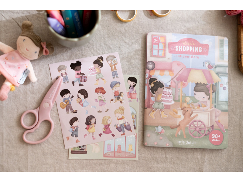 Fantazie vašeho dítěte ožije s touto veselou samolepkovou knížkou Little Dutch. Obsahuje více než 90 barevných samolepek s tématem nakupování a oboustranné herní pozadí, na kterém si děti mohou vytvářet vlastní příběhy, scény a dobrodružství.