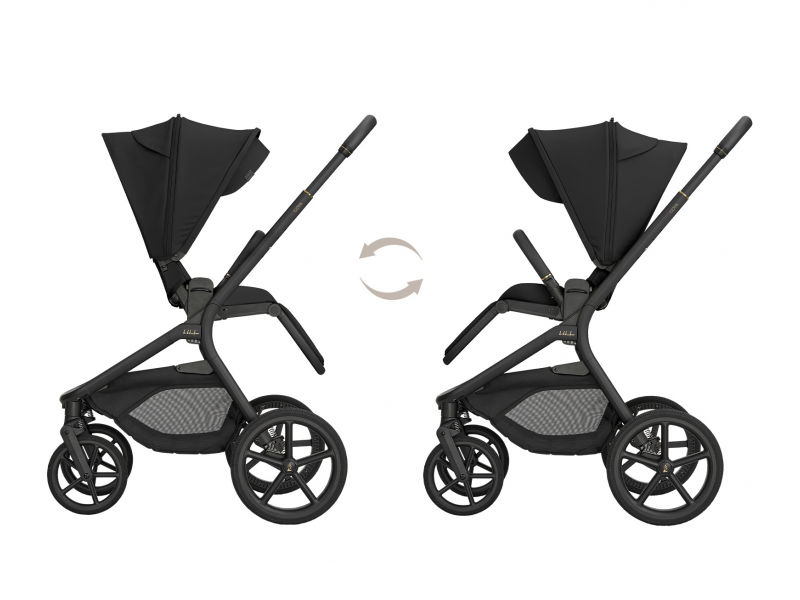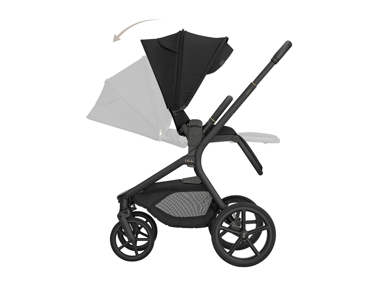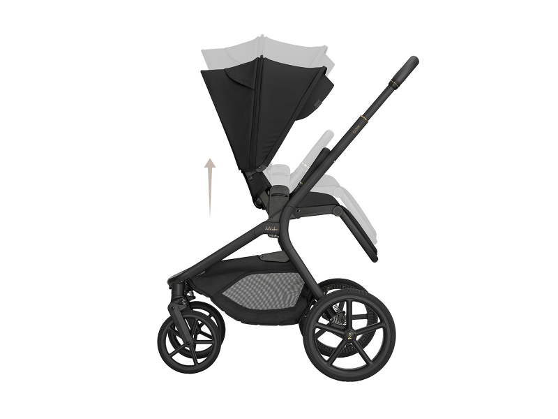 Sportovní sezení je možné nasadit po i proti směru jízdy a díky tlačítkům s pamětí ho uvolníte z podvozku pohodlně jednou rukou. Výšku sezení můžete nastavit do dvou poloh pro přizpůsobení kočárku podle výšky rodiče. Odnímatelné madlo před dítětem je otočné o 360° pro snadnou manipulaci s dítětem a potažené příjemnou ekokůží.