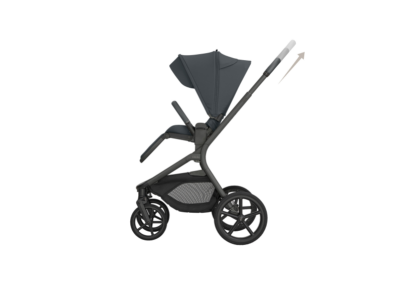 Sportovní sezení je možné nasadit po i proti směru jízdy a díky tlačítkům s pamětí ho uvolníte z podvozku pohodlně jednou rukou. Výšku sezení můžete nastavit do dvou poloh pro přizpůsobení kočárku podle výšky rodiče. Odnímatelné madlo před dítětem je otočné o 360° pro snadnou manipulaci s dítětem a potažené příjemnou ekokůží.