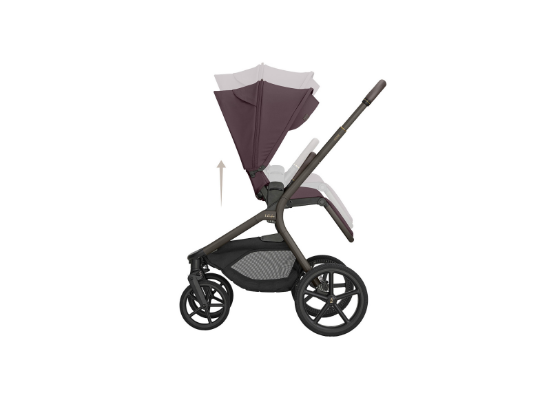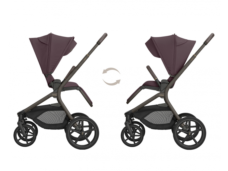 Sportovní sezení je možné nasadit po i proti směru jízdy a díky tlačítkům s pamětí ho uvolníte z podvozku pohodlně jednou rukou. Výšku sezenímůžete nastavit do dvou poloh pro přizpůsobení kočárku podle výšky rodiče. Odnímatelné madlo před dítětem je otočné o 360° pro snadnou manipulaci s dítětem a potažené příjemnou ekokůží.