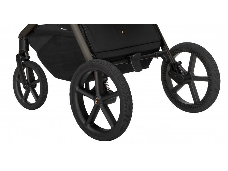 Při jízdě oceníte možnost výškového nastavení rukojeti do 5 pozic. Pohodlnou jízdu a snadné manévrování zajišťují velká kola, přední kola jsou otočná o 360° s možností aretace. Nechybí pružinové odpružení zadních i předních kol a spolehlivá „one touch“ brzda.