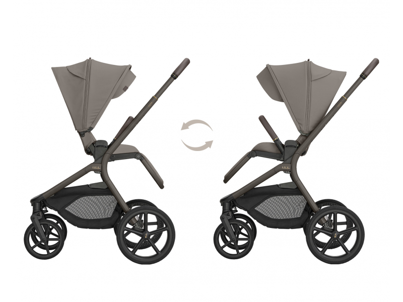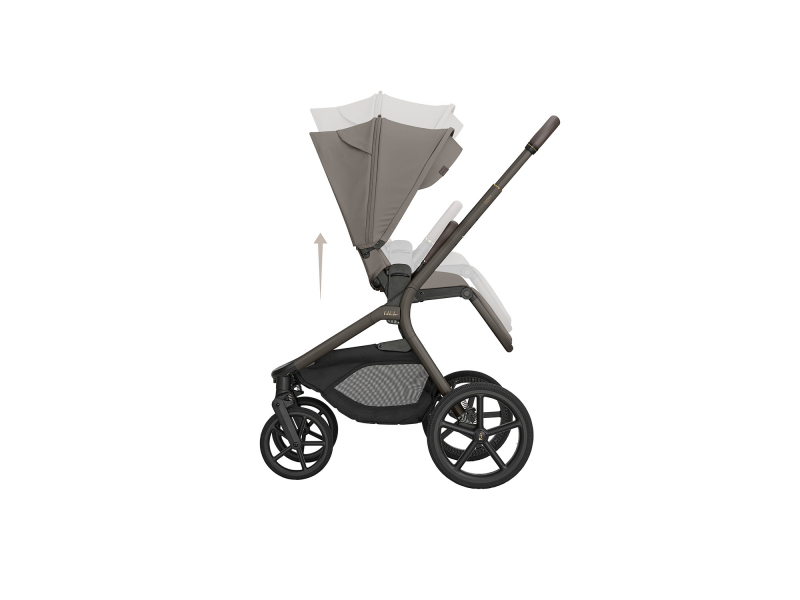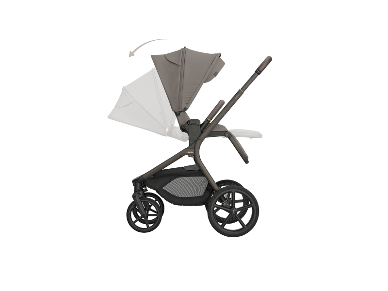 Sportovní sezení je možné nasadit po i proti směru jízdy a díky tlačítkům s pamětí ho uvolníte z podvozku pohodlně jednou rukou. Výšku sezení můžete nastavit do dvou poloh pro přizpůsobení kočárku podle výšky rodiče. Odnímatelné madlo před dítětem je otočné o 360° pro snadnou manipulaci s dítětem a potažené příjemnou ekokůží.