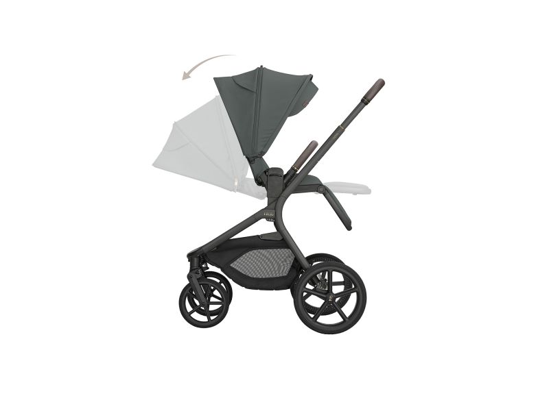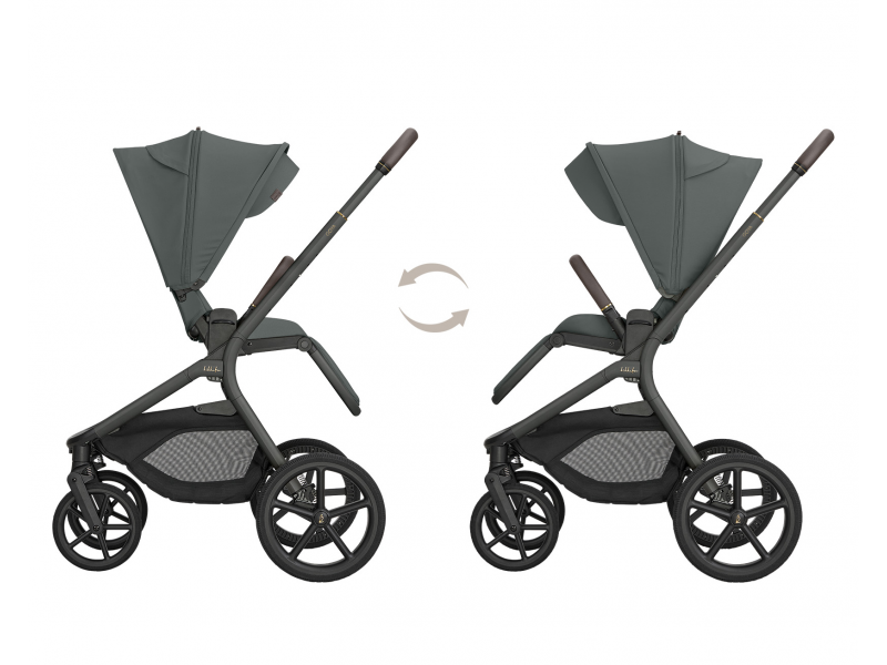 Sportovní sezení je možné nasadit po i proti směru jízdy a díky tlačítkům s pamětí ho uvolníte z podvozku pohodlně jednou rukou. Výšku sezení můžete nastavit do dvou poloh pro přizpůsobení kočárku podle výšky rodiče. Odnímatelné madlo před dítětem je otočné o 360° pro snadnou manipulaci s dítětem a potažené příjemnou ekokůží.