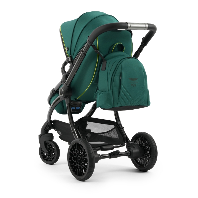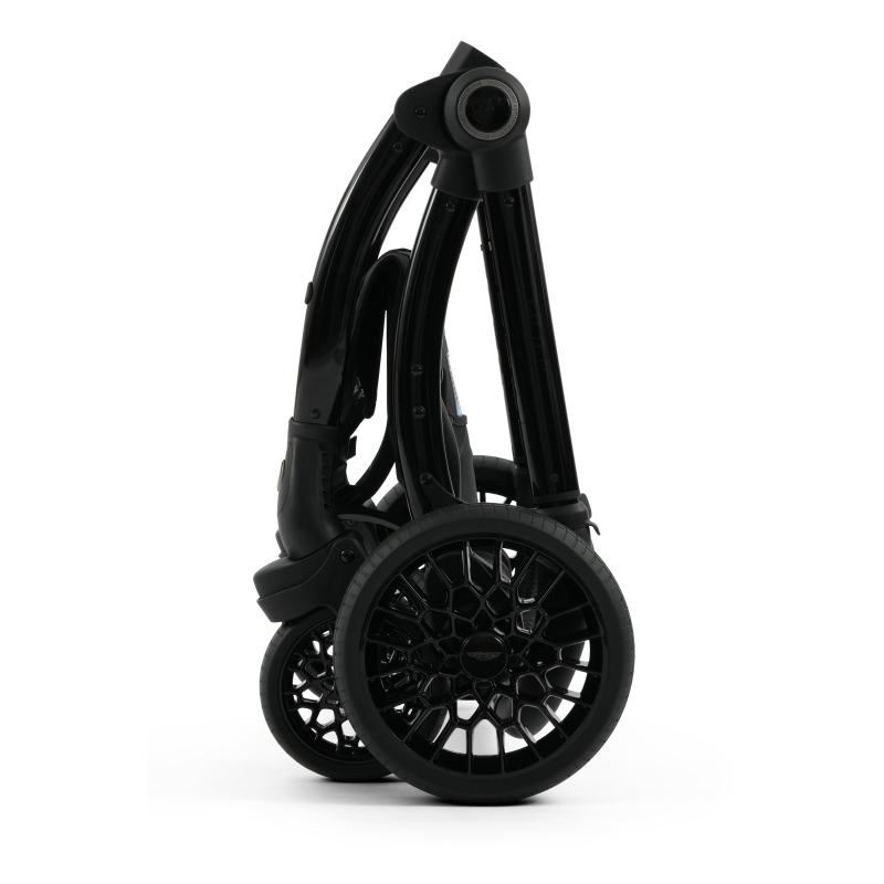 vzduchu. Jemný nápis Aston Martin v limetkové barvě dodává kočárku