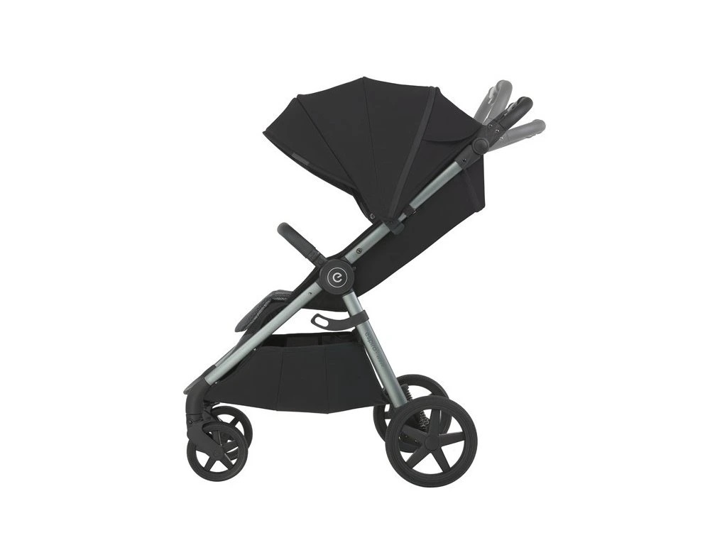 Kočárek je k dispozici ve čtyřech elegantních barvách, na lesklé černé