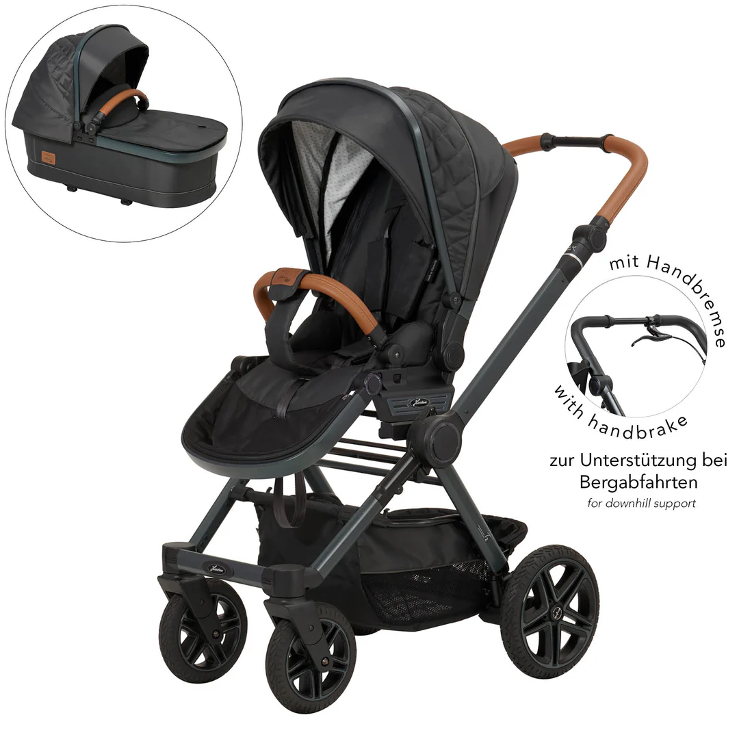 Velká kola kočárku (21,4 cm vpředu / 27,6 cm vzadu) zajišťují výbornou ovladatelnost a hladkou jízdu. Snadno tak projdete užšími místy, vejdete se do menších výtahů nebo v klidu projedete rušnými pěšími zónami, což v každodenním provozu oceníte.