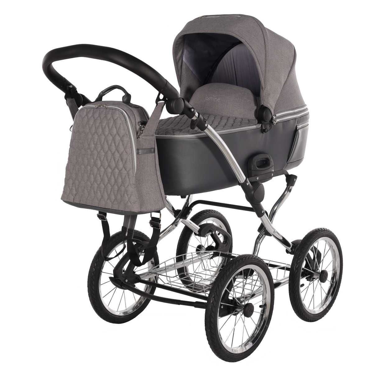 Set 2v1 kombinovaný retro kočárek Jasmine Camino Classic má: