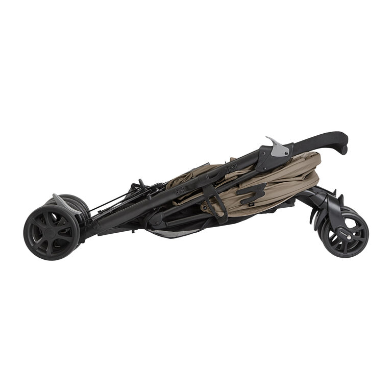 Složen ve vteřině – snadné skládání plynulým pohybem jedné ruky s automatickým zajištěním vám vyslouží obdivné pohledy okolí. Jednoduše skládaný jako kočárek, kompaktní jako golfky. Kočárek si zachovává výhodu golfových holí a vejde se tak do každého zavazadelníku.