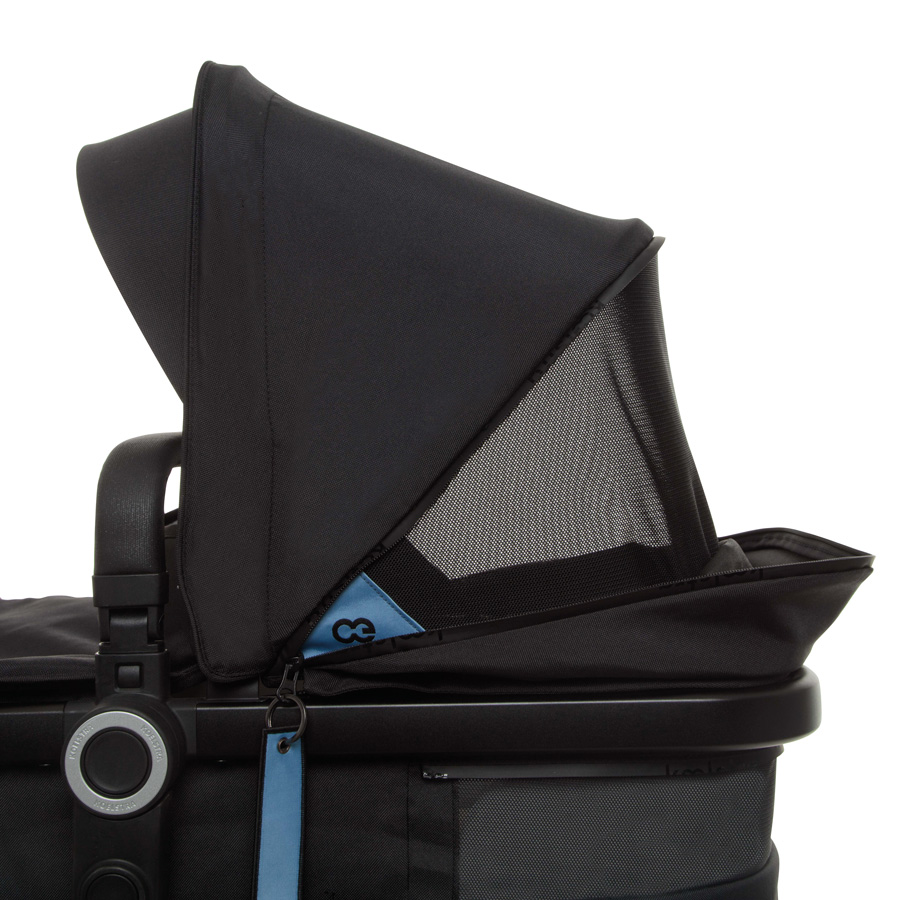 Obsah dodávky: Podvozek, společný rám pro sportovní sedačku a hlubokou vaničku, potah pro sportovní sedačku, potah pro hlubokou vaničku s napínači, matrace do hluboké vaničky, nákupní košík, dečka hluboké vaničky, společná boudička, kšilt k boudičce, společné madlo pro hlubokou vaničku i sportovní sedačku, a navíc pláštěnka, sluneční clona a adaptér Maxi Cosi.