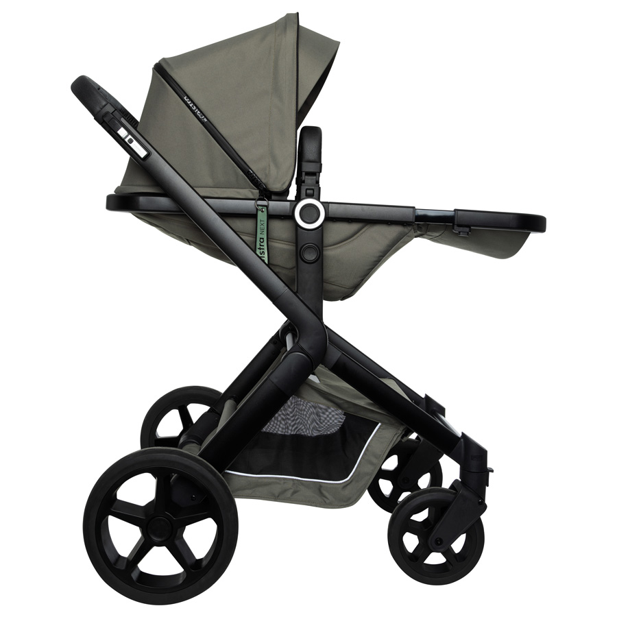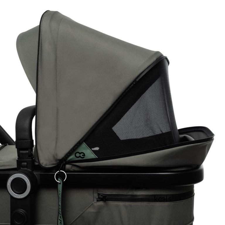Zpočátku, do 9 kg, budete dítě vozit v hluboké korbičce nasazené na podvozku. Později až bude dítě sedět, přesedláte do sporťáku, který využijete až do 22kg. V obou případech bude mít dítě přemíru místa a dokonalé pohodlí. Přední otočná aretovací kola usnadňují manévrování i v úzkých uličkách mezi regály v obchodě. Je také pohodlný, polohuje se celá sportovní sedačka a dítě tak může spát. Na podvozku ji můžete mít po a nebo proti směru jízdy a navíc ji složíte spolu s podvozkem. Hluboký kočárek Koelstra Next užijete díky jeho velikosti po dlouhou dobu.