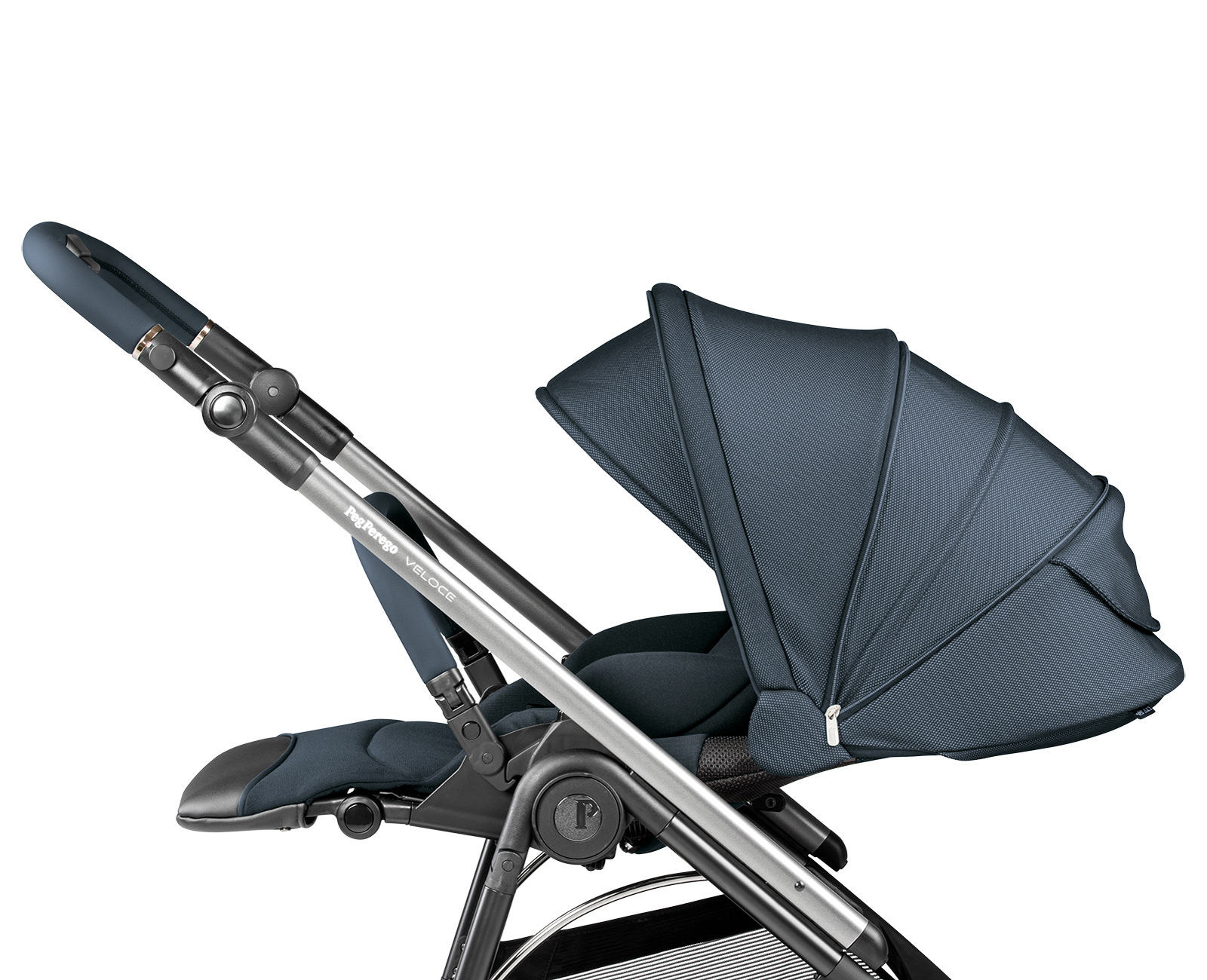 Výškově nastavitelná rukojeť v eco kůži zajišťuje to nejpohodlnější a nejpřívětivější ovládání kočárku, a to i jen jednou rukou. Jelikož i na pouhou procházku je zapotřebí vzít si s sebou spoustu nezbytností, snadno přístupný a prostorný košík kočárku Veloce je vybavený vyztuženým dnem pro těžší náklad (až 7 kg). I na košíku se nacházejí reflexní prvky pro vyšší bezpečnost během snížené viditelnosti. Ať už vaše dítě v kočárku zrovna odpočívá nebo objevuje okolní svět, prodlužovací XXL stříška s UPF 50+ jej ochrání před sluncem a větrem. Neméně užitečný je i na míru šitý nánožník, který poskytuje ochranu dítěte i v případě sklopené opěrky zad.