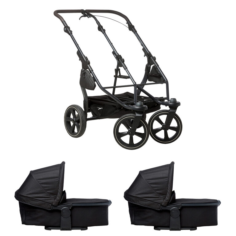 Konstrukce kočárku duo2 je větší, lehčí, odpruženější, lépe ovladatelná. Snadno na ni nacvaknete nový model hluboké korby duo2 combi, nebo sportovní sezení stroller seats duo2. Lze mít separátně dvě korby, nebo dva sedáky pro dvojčátka, anebo kombinaci korba a sedák pro sourozence.