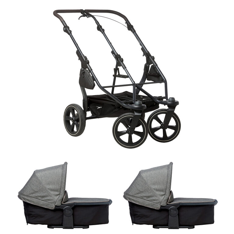 Konstrukce kočárku duo2 je větší, lehčí, odpruženější, lépe ovladatelná. Snadno na ni nacvaknete nový model hluboké korby duo2 combi, nebo sportovní sezení stroller seats duo2. Lze mít separátně dvě korby, nebo dva sedáky pro dvojčátka, anebo kombinaci korba a sedák pro sourozence.