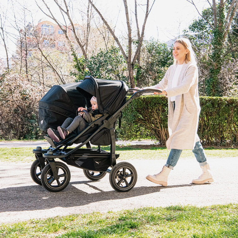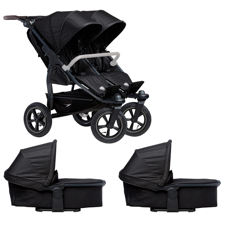 Konstrukce kočárku duo2 je větší, lehčí, odpruženější, lépe ovladatelná. Snadno na ni nacvaknete nový model hluboké korby duo2 combi, nebo sportovní sezení stroller seats duo2. Lze mít separátně dvě korby, nebo dva sedáky pro dvojčátka, anebo kombinaci korba a sedák pro sourozence.