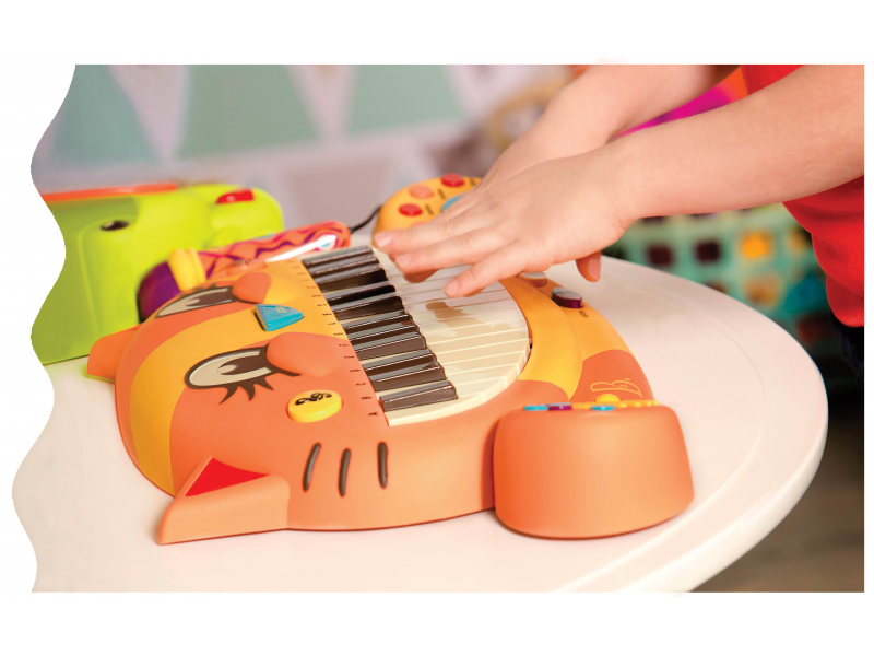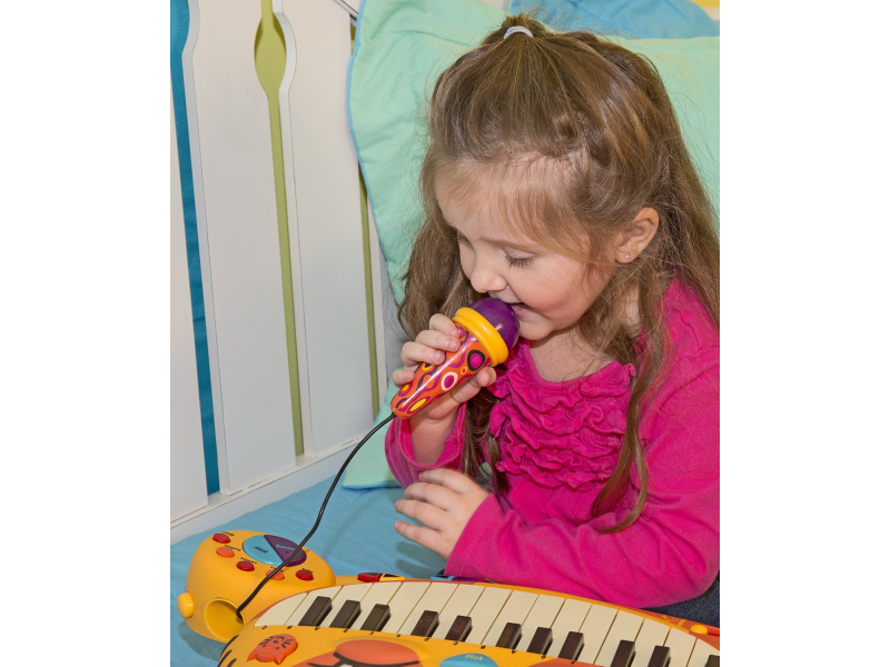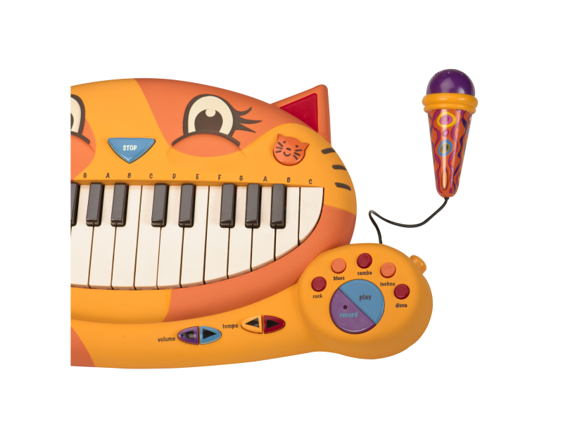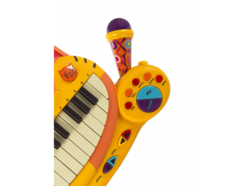 Elektronické piáno Btoys s funkčním mikrofonem pro malé hudebníky. Možnost volby z 5 instrumentů, 5 rytmů, 20 známých melodií a 7 kočičích písniček. Nastavení hlasitosti a tempa. Funkce nahrání vlastní melodie umožňuje zaznamenat první skladatelské pokusy. Mikrofon je možné odpojit.