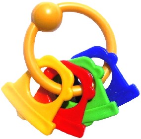 Veselé chrastítko se čtyřmi plastovými zvonky pro nejmenší.
