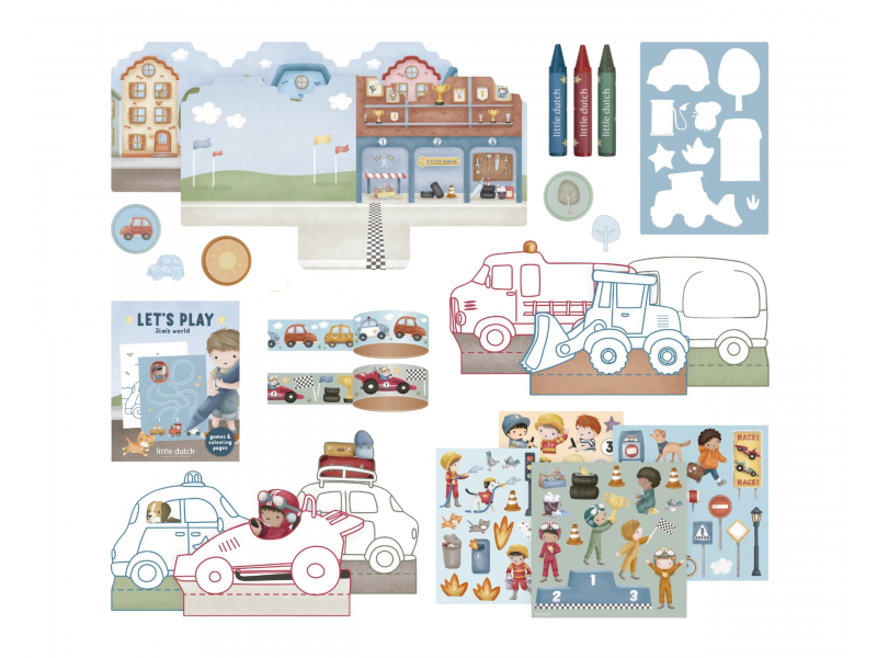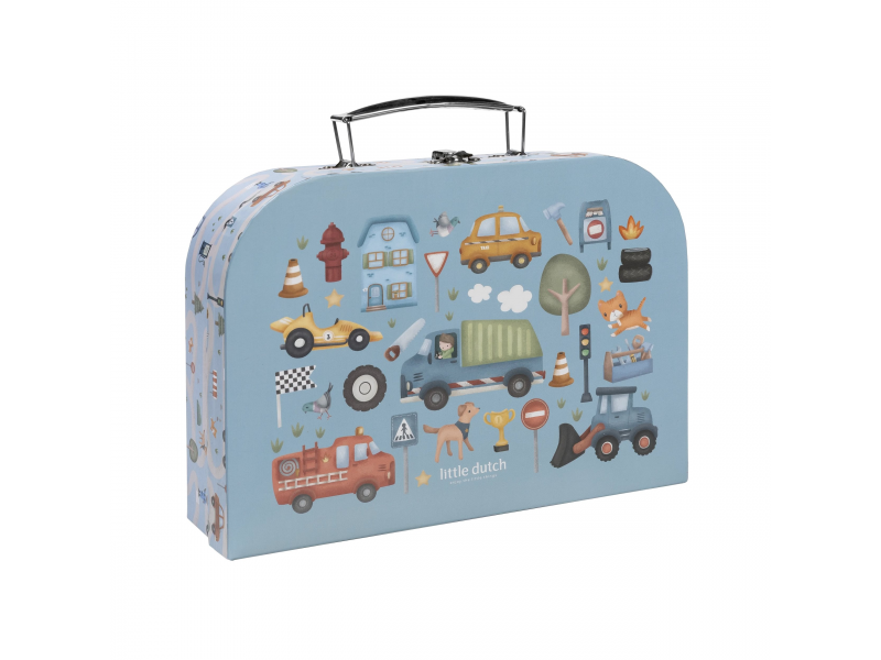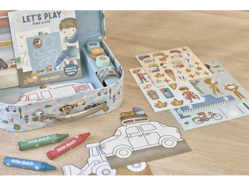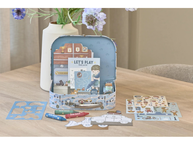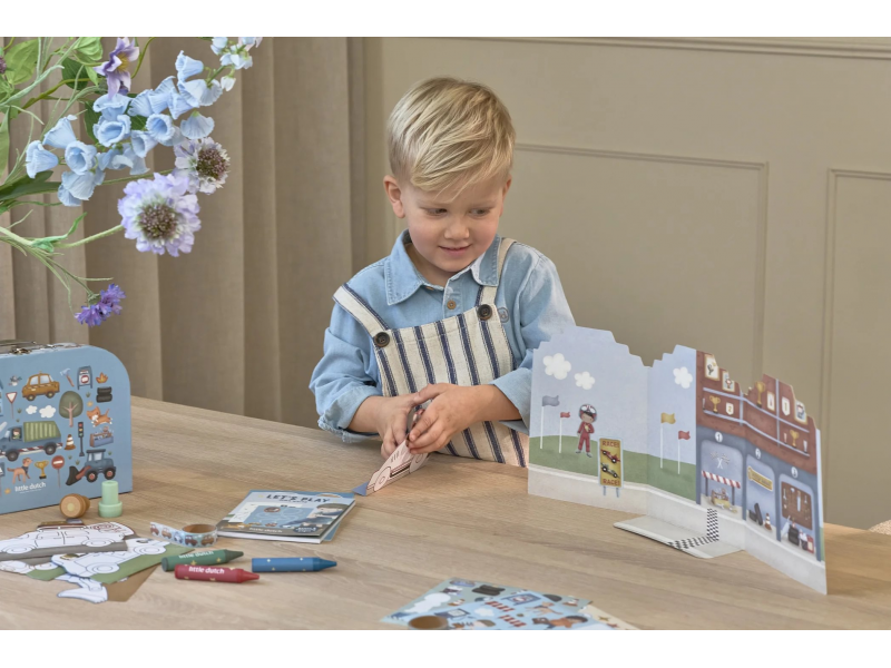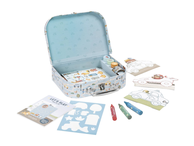 Velká kreativní sada obsahuje potřeby pro různé druhy výtvarného tvoření včetně pastelek, samolepek, razítek apod. Motivy ze života ve městě, různé dopravní prostředky a profese, to vše vybízí k vymýšlení příběhů a kreativnímu tvoření. Vše je zabalené v krásném kufříku, do kterého vše po skončení hry snadno uklidíte.