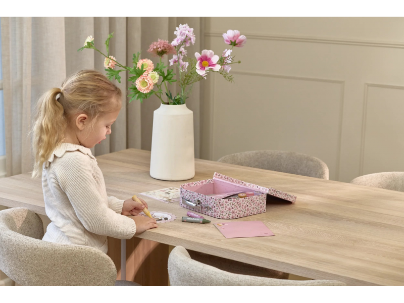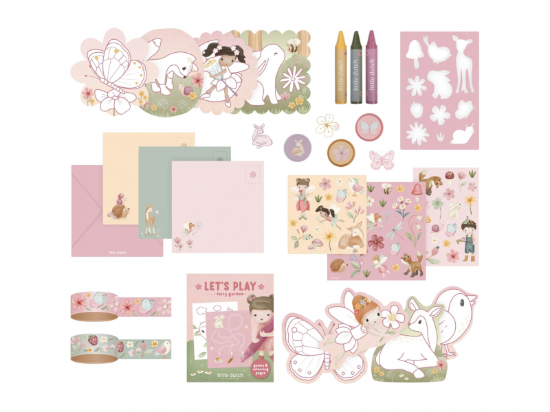 Velká kreativní sada obsahuje potřeby pro různé druhy výtvarného tvoření včetně pastelek, samolepek, razítek apod. Motivy ze života pohádkové víly, zvířátka a květiny, to vše vybízí k vymýšlení příběhů a kreativnímu tvoření. Vše je zabalené v krásném kufříku, do kterého vše po skončení hry snadno uklidíte.