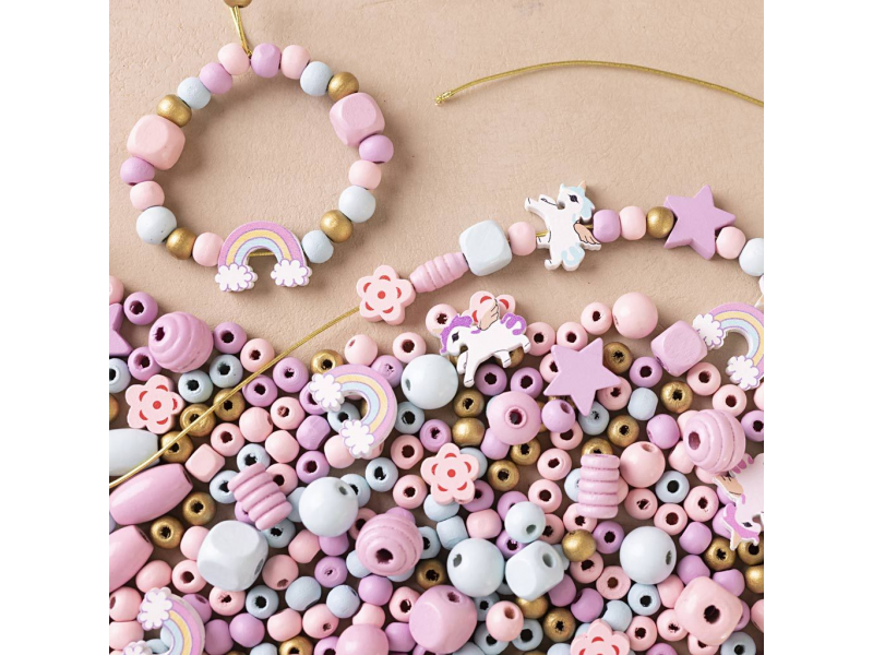 Originální kreativní sada pro výrobu korálkových šperků. Navlékáním dřevěných korálků si děti mohou vytvořit si vlastní šperky v krásných pastelových barvách podle své nálady a stylu. Ideální tvoření pro malé kreativce, kteří si chtějí vyrobit náramky, náhrdelníky nebo třeba řetízek na kotník.