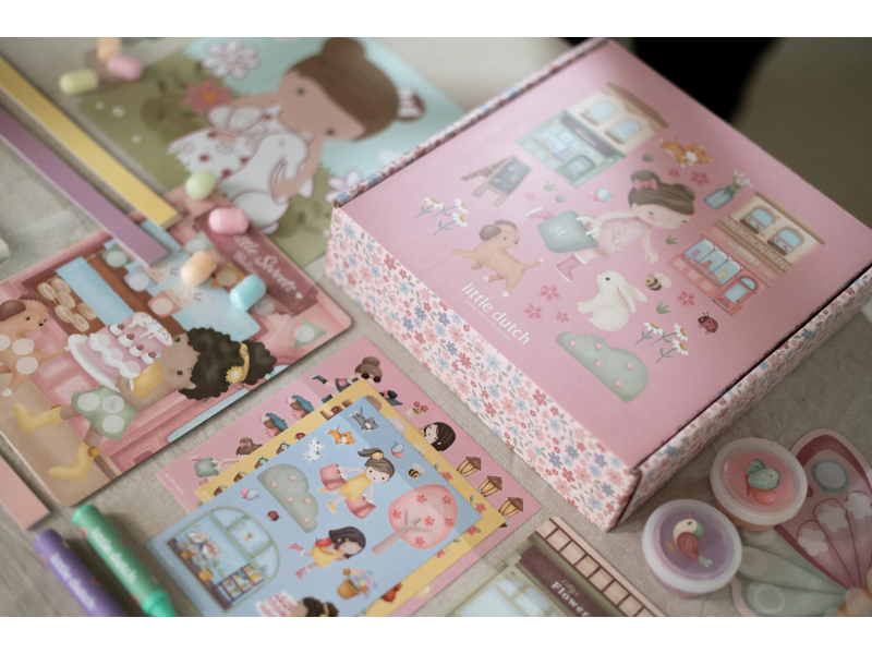 Podpořte dětskou fantazii s touto velkou kreativní sadou Little Dutch s tématikou života holčičky Rosy a jejích kamarádů ve městě i v přírodě. Krabice je plná výtvarných pomůcek, které inspirují k tvoření, malování i lepení.
