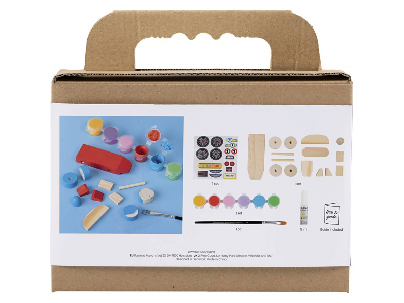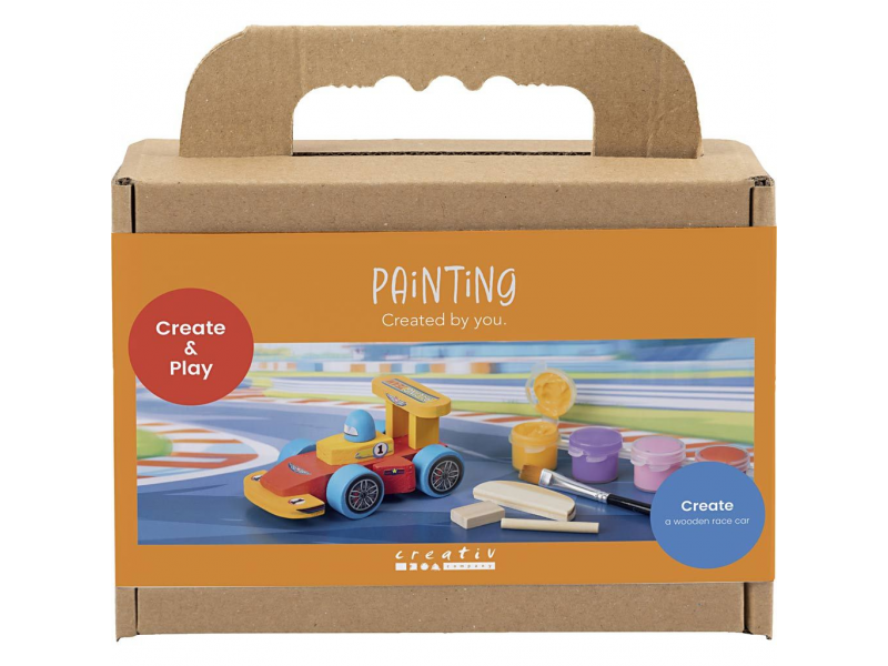 Originální kreativní sada pro výrobu dřevěného závodního auta dětem umožní postavit si vlastní hračku od úplného začátku – nejprve jednotlivé díly nabarví, nechají zaschnout, poté je slepí a nakonec dozdobí samolepkami. Výsledkem je jedinečné autíčko připravené na hraní i vystavení v dětském pokoji.