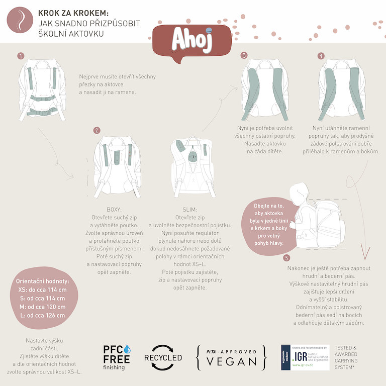 Školní batoh nese pečeť kvality Ergonomic Product od IGR e.V., která