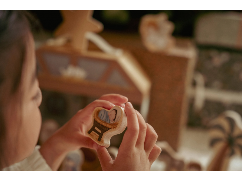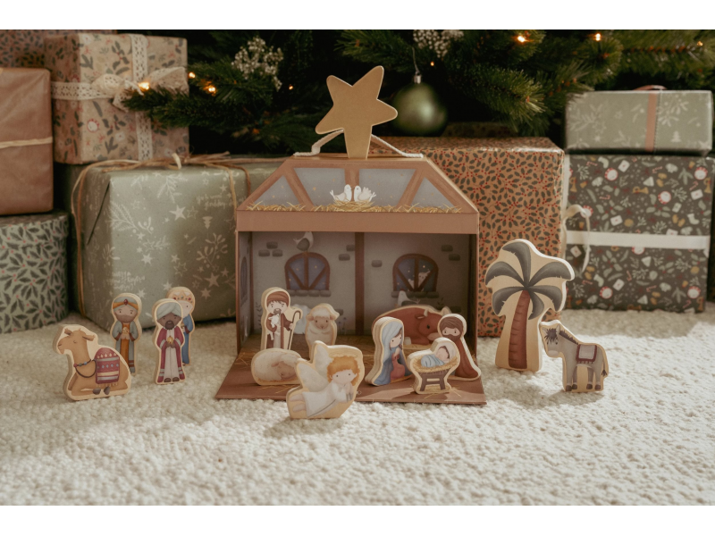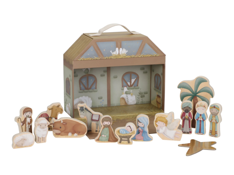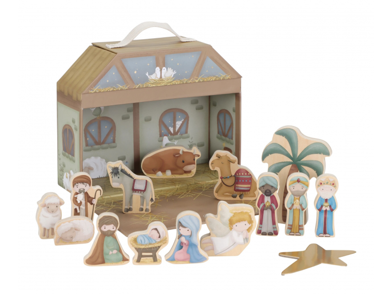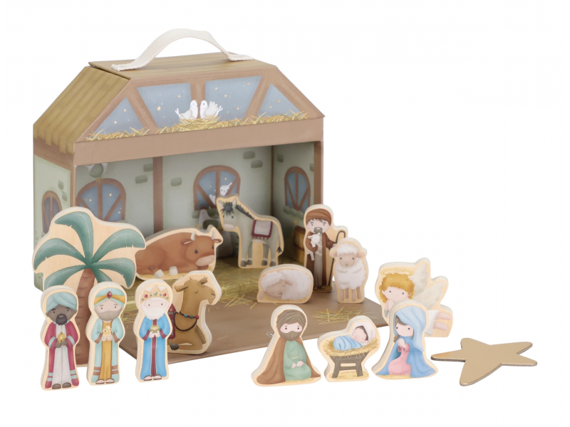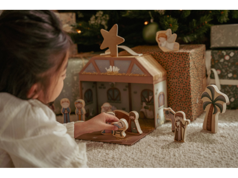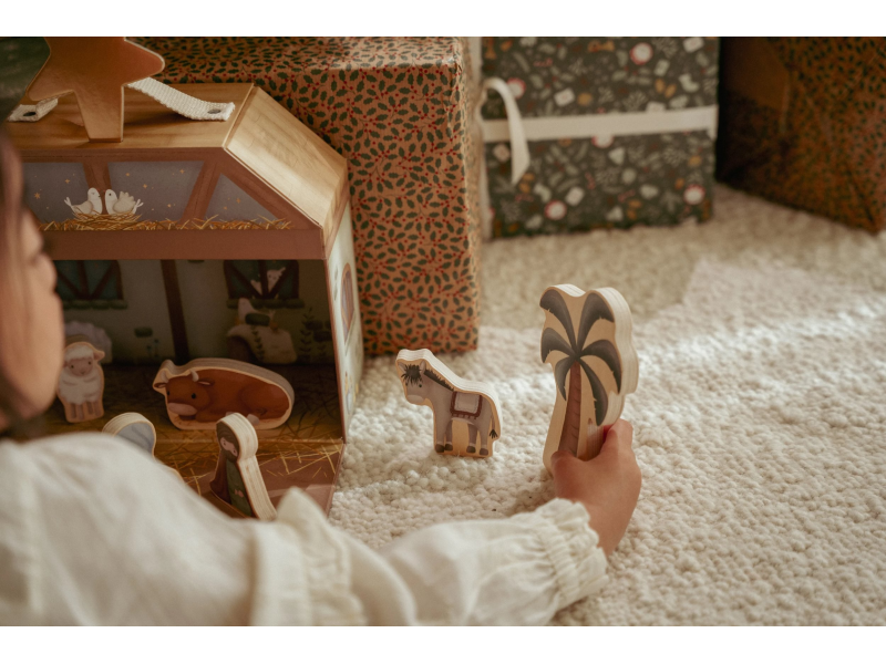 Krásný betlém s postavami z tradičního vánočního příběhu potěší vás i vaše děti každé Vánoce. 14 postaviček je vyrobeno ze dřeva, chlév z kvalitního pevného kartonu slouží i jako přenosný a úložný kufřík.