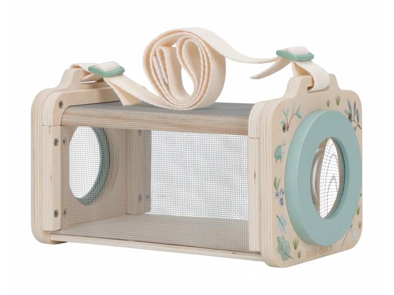 Unikátní pomůcka pro malé zvídavé přírodovědce umožní dětem zkoumat zblízka a bezpečně hmyz, který žije na zahradě, na louce nebo v lese. Velká lupa slouží i jako dvířka, kterými se hmyz dostane dovnitř boxu. Boční stěny jsou ze síťoviny, aby byl hmyz uvnitř v bezpečí a mohl dýchat. Popruh umožňuje snadné nošení na krku s volnýma rukama. Po skončení pozorování hmyz můžete bez problémů vypustit zpátky do přírody, kam patří!